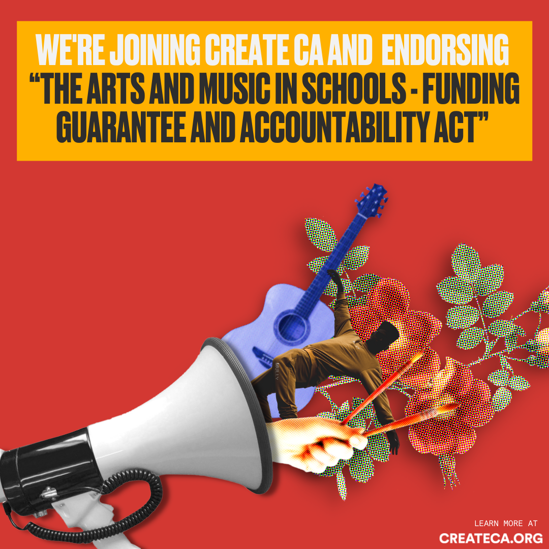 “The Arts and Music in Schools – Funding Guarantee and Accountability Act” ballot measure is our chance to make lasting change in California’s students’ lives. The proposed ballot measure will provide substantial ongoing funding to public schools’ arts programs without raising taxes. We encourage ALL California arts and education organizations to join Create CA in...