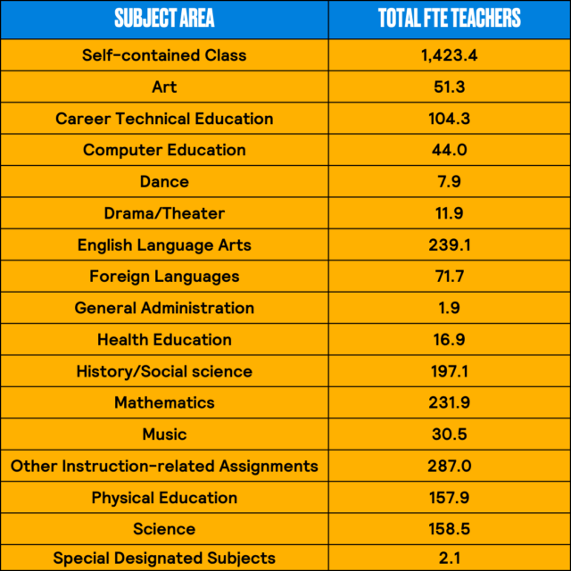 Data from the California Department of Education. Retrieved October 3, 2023, from https://dq.cde.ca.gov/dataquest/DQCensus/TchAssgnOutcome.aspx?agglevel=District&cds=3467314&year=2021-22